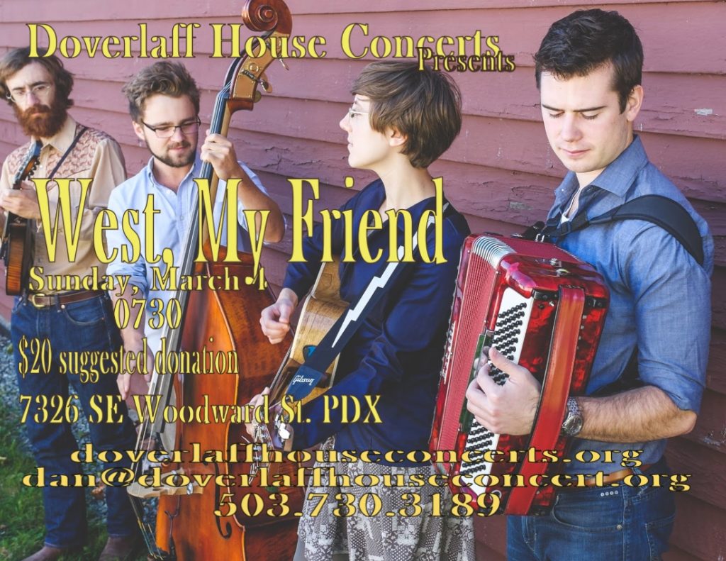 A few months ago Cheryl and I attended the Far West Folk Alliance conference in Bellingham as a chance to discover some new music for this house concert series. We had a great time and heard lots of great music. Among the stand out performances we saw, West, My Friend, shone brighter than most.